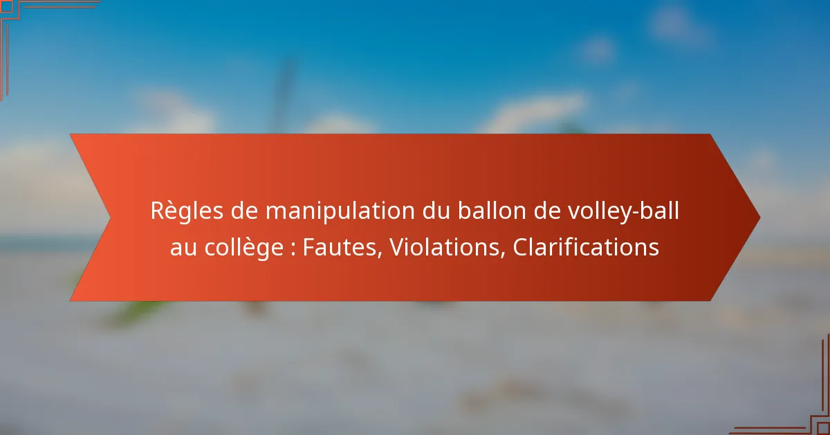 Dans le volleyball au collège, comprendre les règles de manipulation du ballon est essentiel pour que les joueurs naviguent efficacement dans le jeu. Les fautes et violations clés peuvent perturber le jeu et entraîner des pénalités, impactant la compétition dans son ensemble. En se familiarisant avec ces réglementations, les joueurs peuvent améliorer leurs compétences tout en garantissant un jeu équitable sur le terrain.