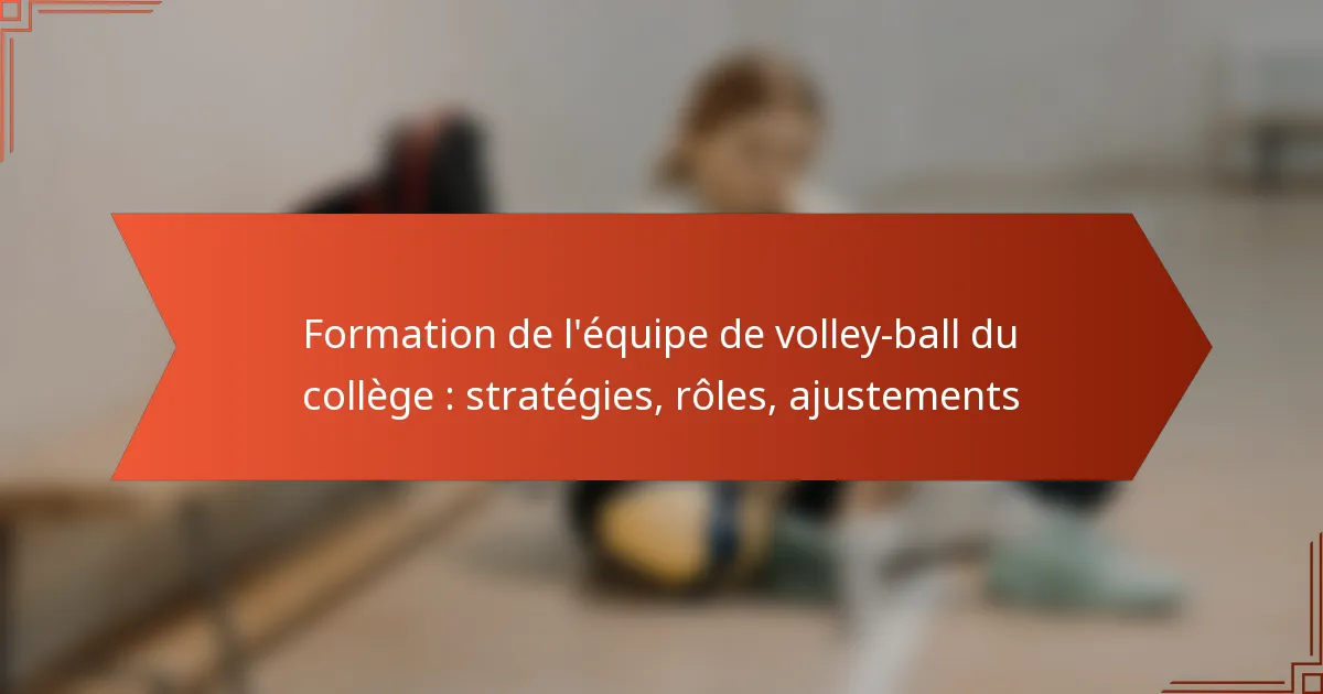 Former une équipe de volley-ball au collège efficace nécessite des stratégies efficaces qui priorisent la sélection des joueurs en fonction de leurs compétences et de leur potentiel, garantissant des équipes équilibrées qui favorisent le travail d’équipe et le développement des compétences. Comprendre les rôles essentiels tels que les passeurs, les attaquants et les libéros est clé pour améliorer le jeu et favoriser une unité cohésive. De plus, effectuer des ajustements en temps opportun pendant les entraînements et les matchs permet à l’équipe de s’adapter à des situations dynamiques, garantissant une communication claire et une réactivité face aux forces des adversaires.